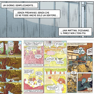 Il fumetto, in questo secondo universo, non è evasione: è una lente sporca che mette a fuoco meglio. Questo focus nasce da tre traiettorie che si incrociano come linee di fuga su un muro occupato: il lavoro corale “Quel che resta del parco” curato da Francesco Matteuzzi, la produzione di Ivan Hurricane a Milano e la zine C.R.E.P.E. Sul Comitato Mubasta. Tre forme diverse, un’unica grammatica: raccontare ciò che viene sistematicamente rimosso.