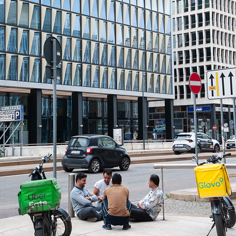 Mi sembra di individuare due tipi di nuove scenografie urbane: quella legata al mantra green declinata nel parco commerciale e quella dominata dall’estetica del lusso: i macchinoni costosi che escono dai box sotterranei, gli atrii dei nuovi condomini, monumentali come quelli dei palazzi fascisti, l’arredamento dei ristoranti con finiture in metallo brunito ed alabastro, le telecamere nei giardinetti del Bosco Verticale, la falsa eleganza dei nuovi uffici neri e grigi.